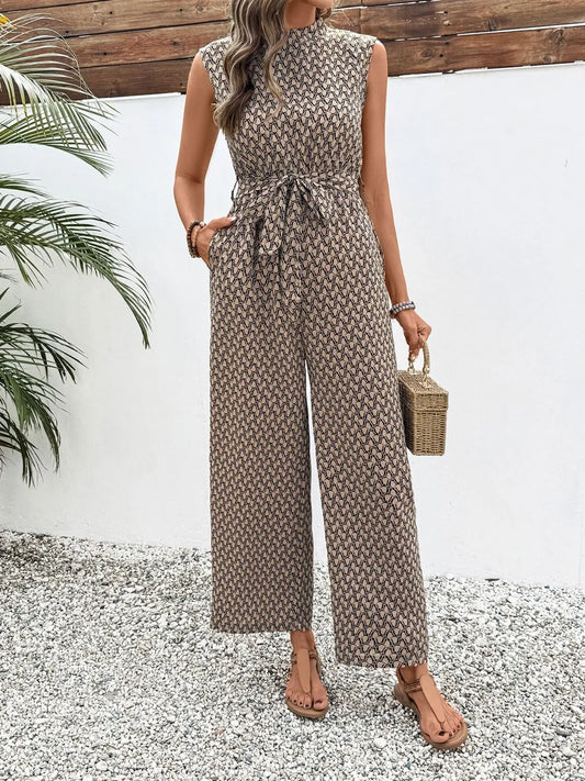 Multicolour Floral Print Smocked Halter Neck Sleeveless Wide Leg Jumpsuit
